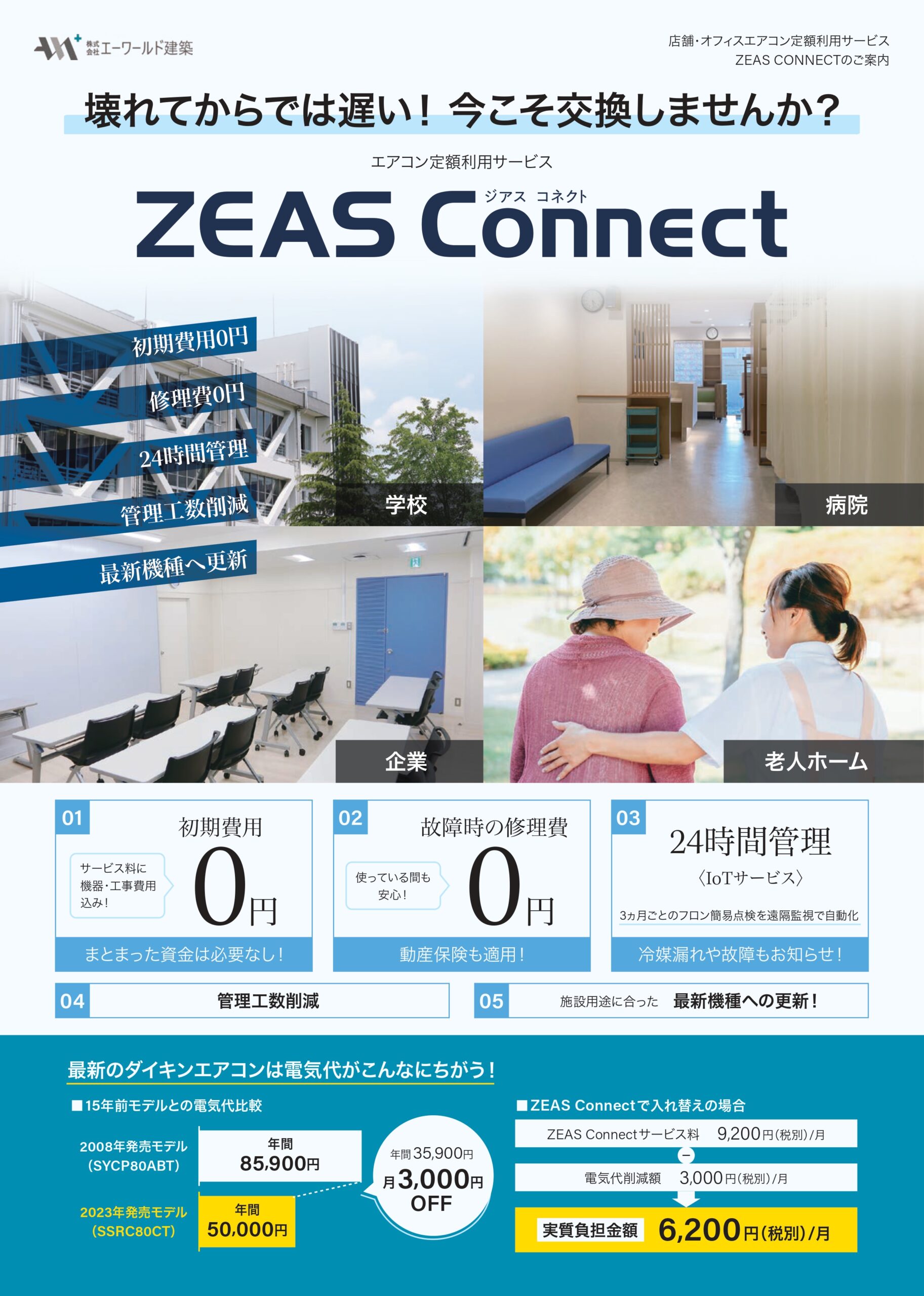 ZEAS Connectは、最新のダイキン製エアコンを月額定額料金で利用できるサブスクリプション型のサービスです。