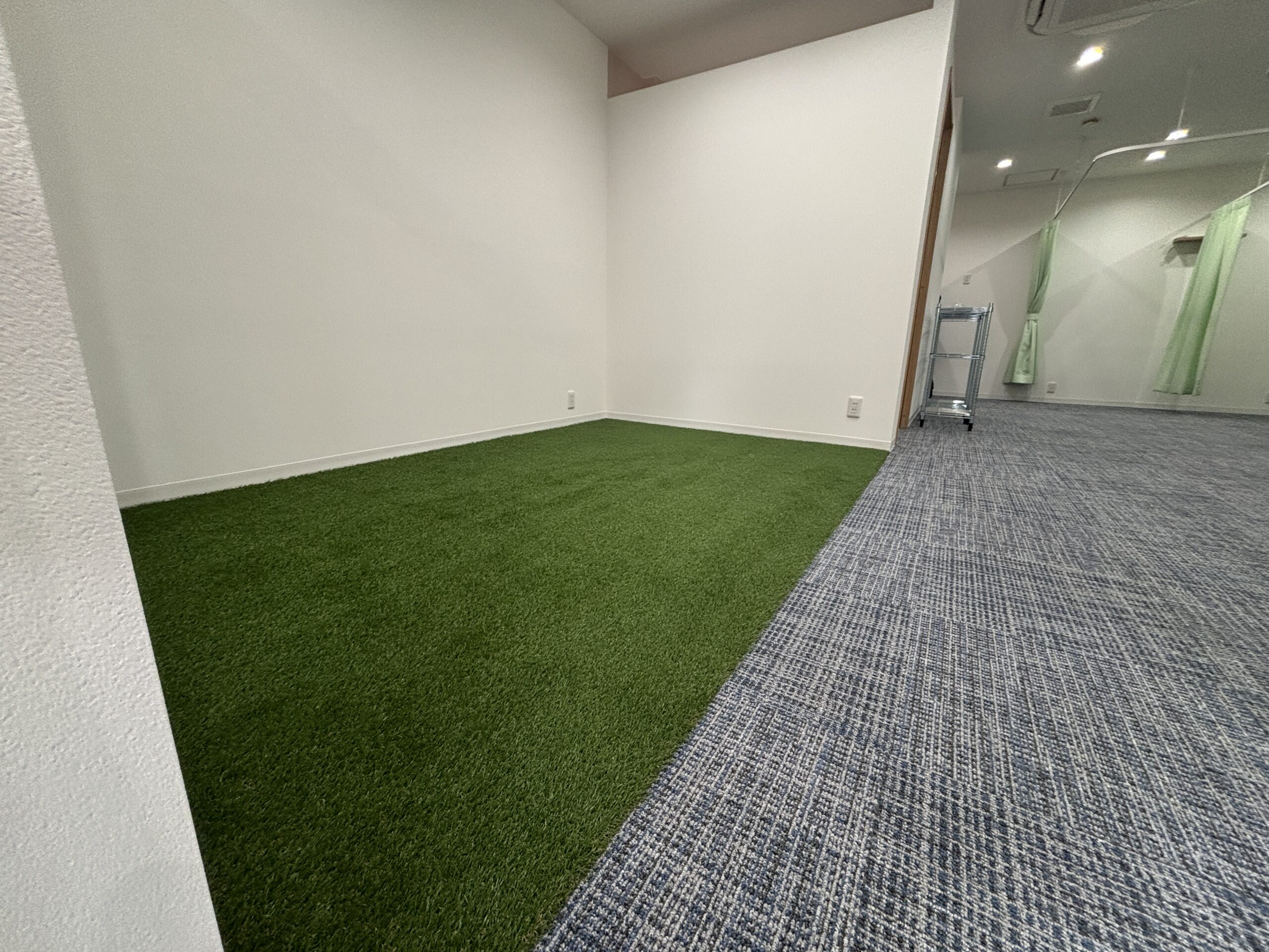 - 内装工事:壁/天クロス貼・床/塩ビタイル貼、カーテン工事・人工芝